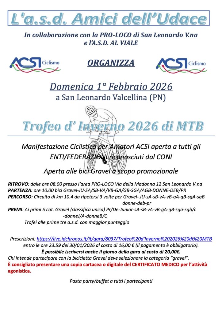 Gara di MTB con biciclette Gravel - 1 febbraio 2026 a fianco la locandina, sotto ulteriori dettagli