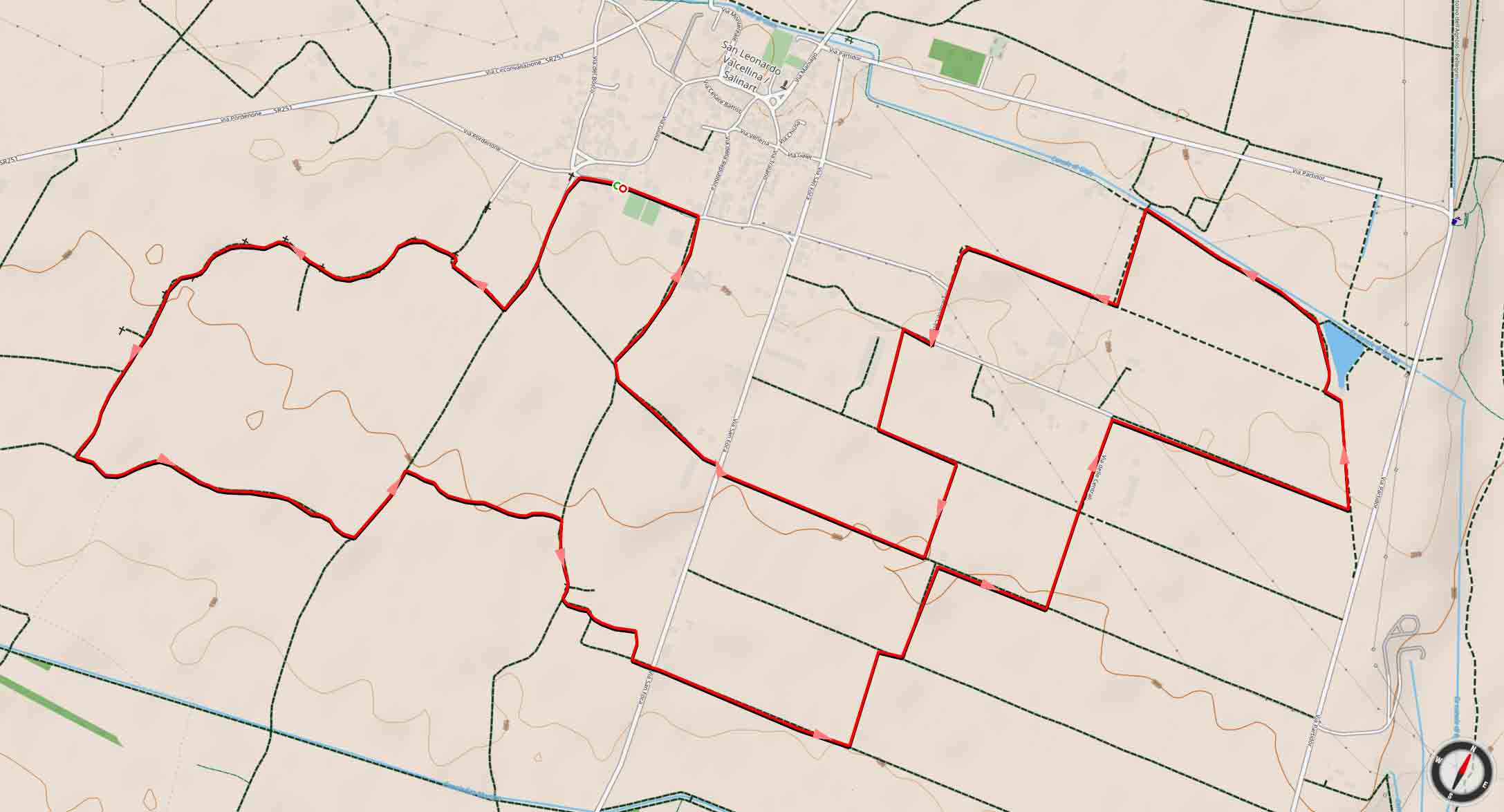 Pedalare per mettersi alla prova, rimanere in salute ma soprattutto vivere le bellezze del territorio. Il percorso, snodandosi nelle campagne sanleonardesi, permette di posare lo sguardo su alcuni luoghi caratteristici del posto (stazioni della Via Crucis realizzate da Giovanni Cuccarollo, il seicentesco oratorio dello Spirito Santo e il bacino di carico della ex centrale idroelettrica del Partidor).